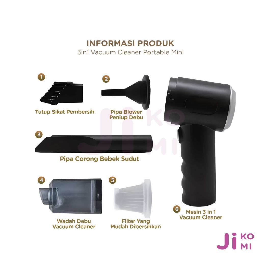Vacuum Cleaner Mobil 3 In 1 Mini Portable Penghisap Debu Tanpa Kabel Rechargeable Multifungsi - JI