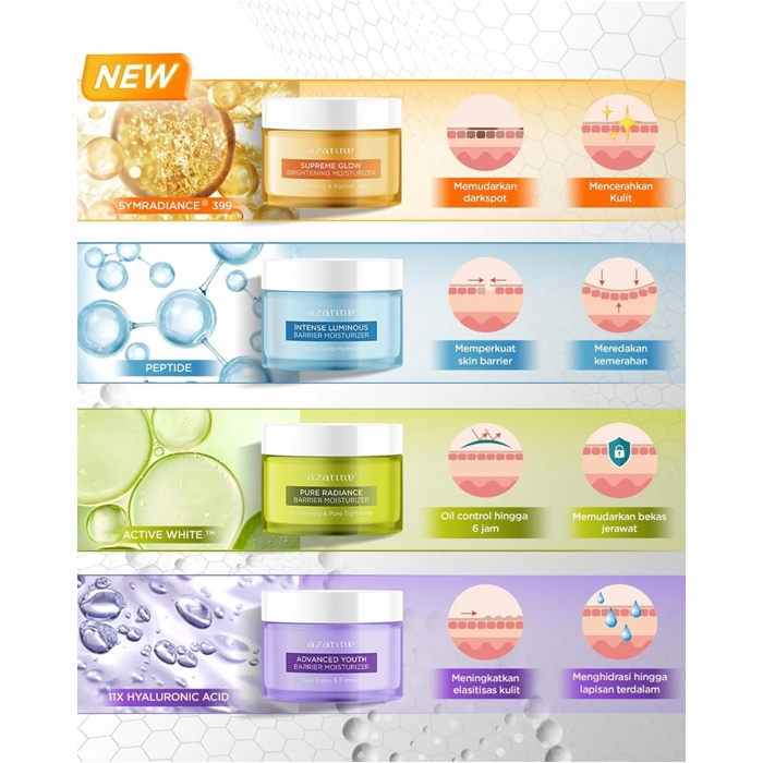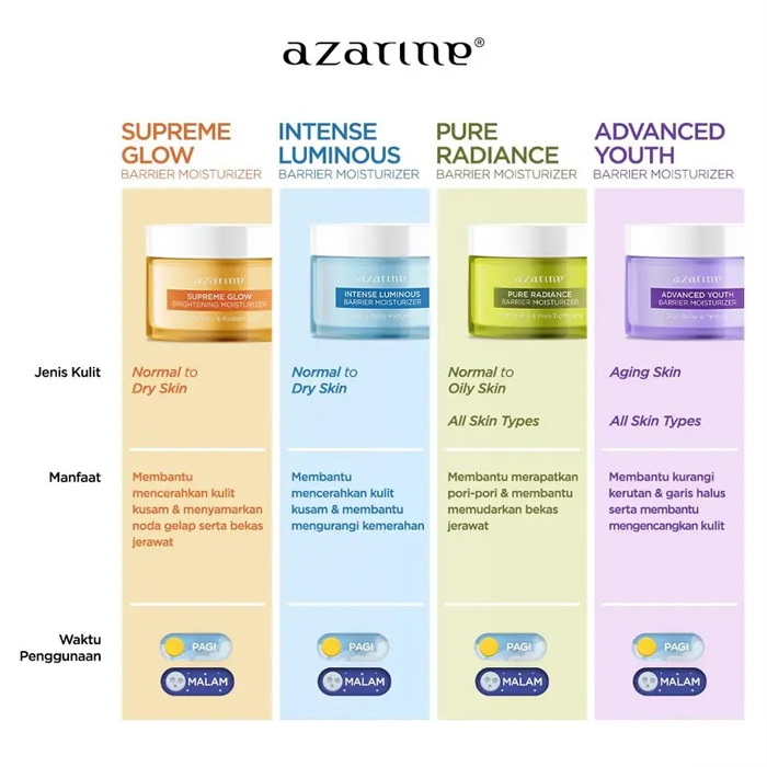 AZARINE Barrier Moisturizer | Pure Radiance | Intense Luminous | Advanced Youth | Brightening Glow 30g