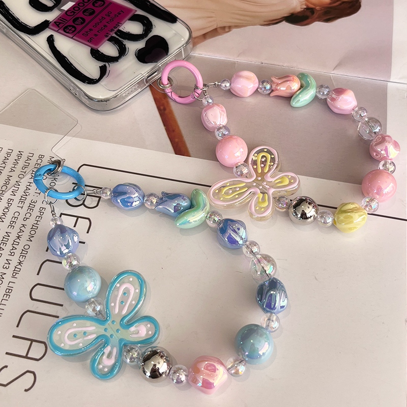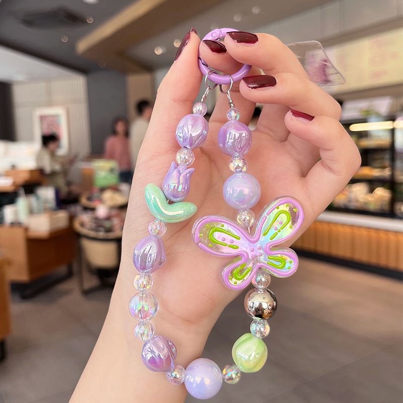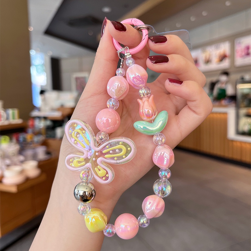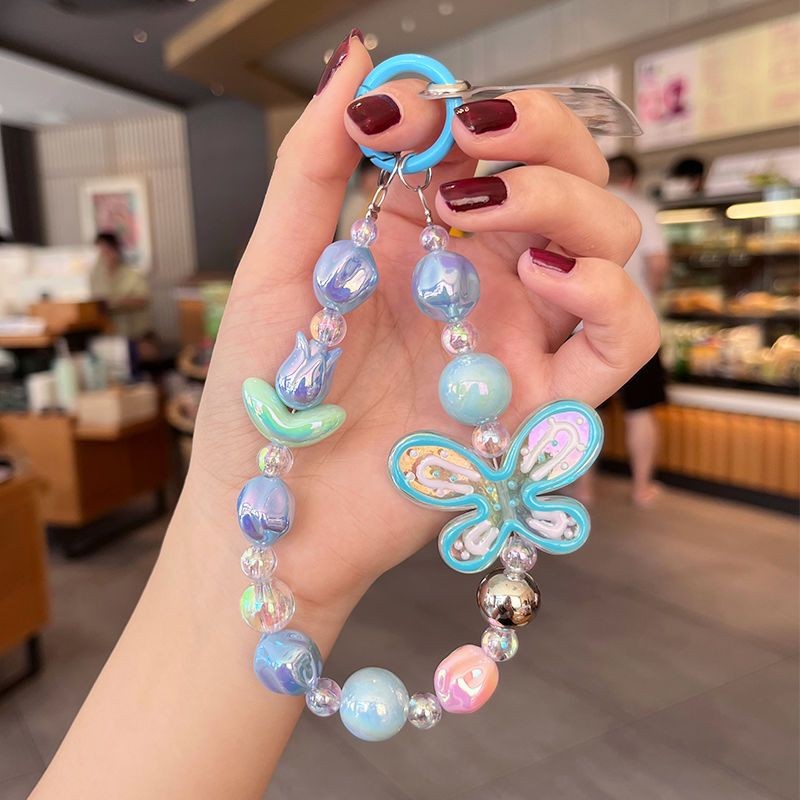 Super Lovely Gantungan Hp Aesthetic Korea Handphone Gelang Lanyard HP Headset Bluetooth Tas Aksesoris Liontin kupu Tulip