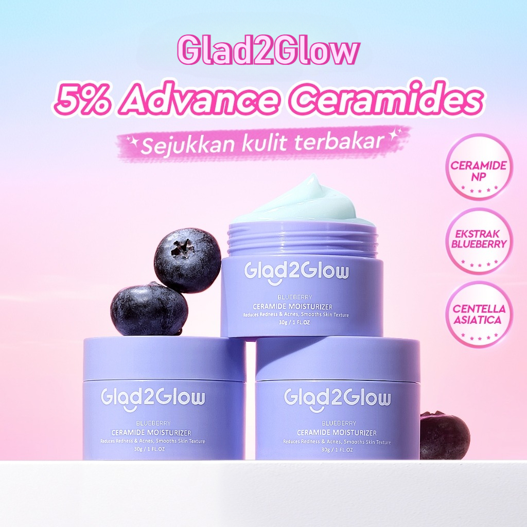 Glad-2Glow Blueberry 5% Ceramide Moisturizer Repair Barrier Pulihkan skincare day cream Night Cream krim wajah moisturizer cream