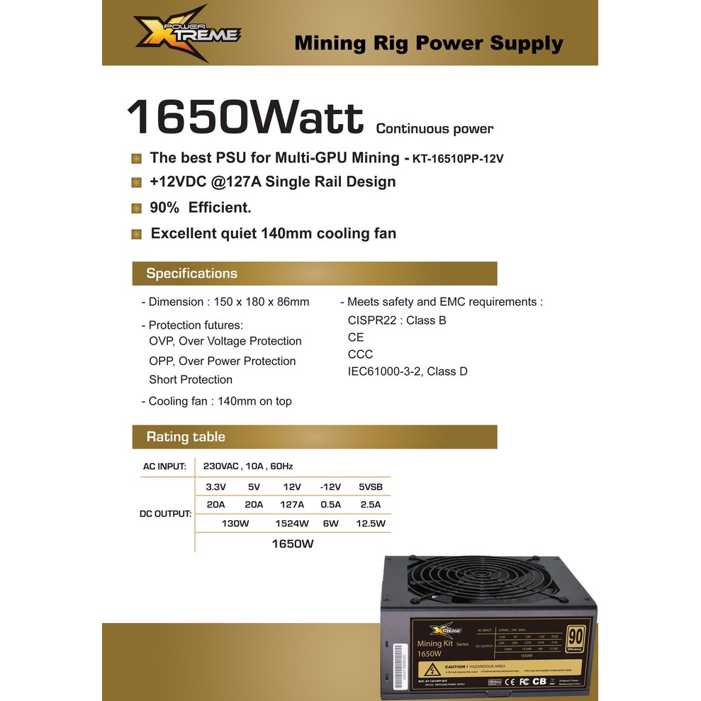 Xtreme KT1650PP PSU 1650W Power Supply PC Gaming & Mining 1650 Watt
