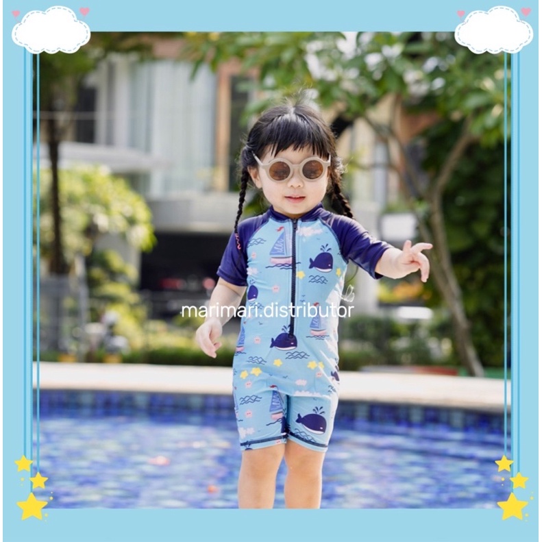 Y05 Baju renang anak lengan pendek unisex antiuv bayi nyambung 1-4 tahun / one piece