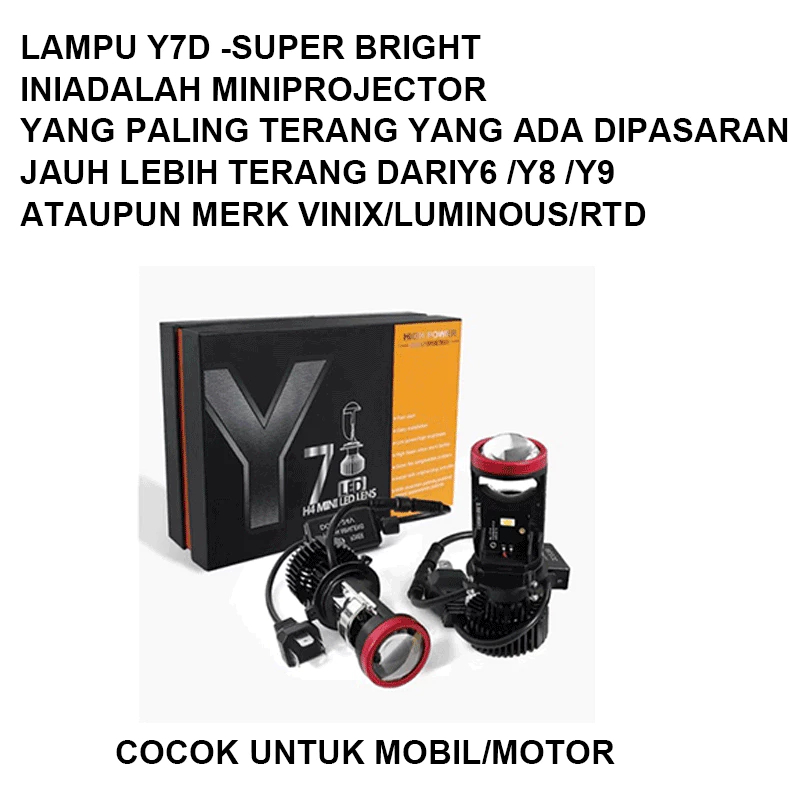 Y7D Lampu Led Mobil Dan Motor H4 MINI PROJECTOR PROJIE Mini Y7D ORIGINAL SUPER TERANG