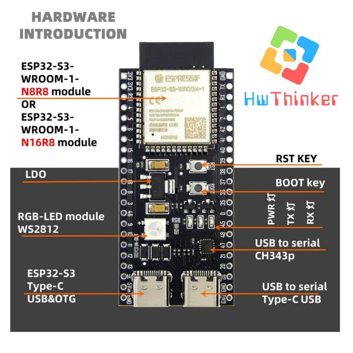 YD-ESP32-S3 Original VCC-GND Studio ESP32-S3-DevKitC-1 type-C ESP32-S3-WROOM WIFI Bluetooth PSRAM N8R8 N16R8
