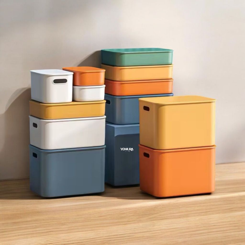 YOMURA Kotak Penyimpanan Serbaguna dengan Tutup Warna Tumpuk Susun/ Storage Box Organizer/ Wadah Tempat Barang Gudang Peach Kuning Hijau Biru/ Warna Pastel/ Kotak Boks Penyimpanan Barang Kamar Rak Laci Lemari Dapur Kosmetik
