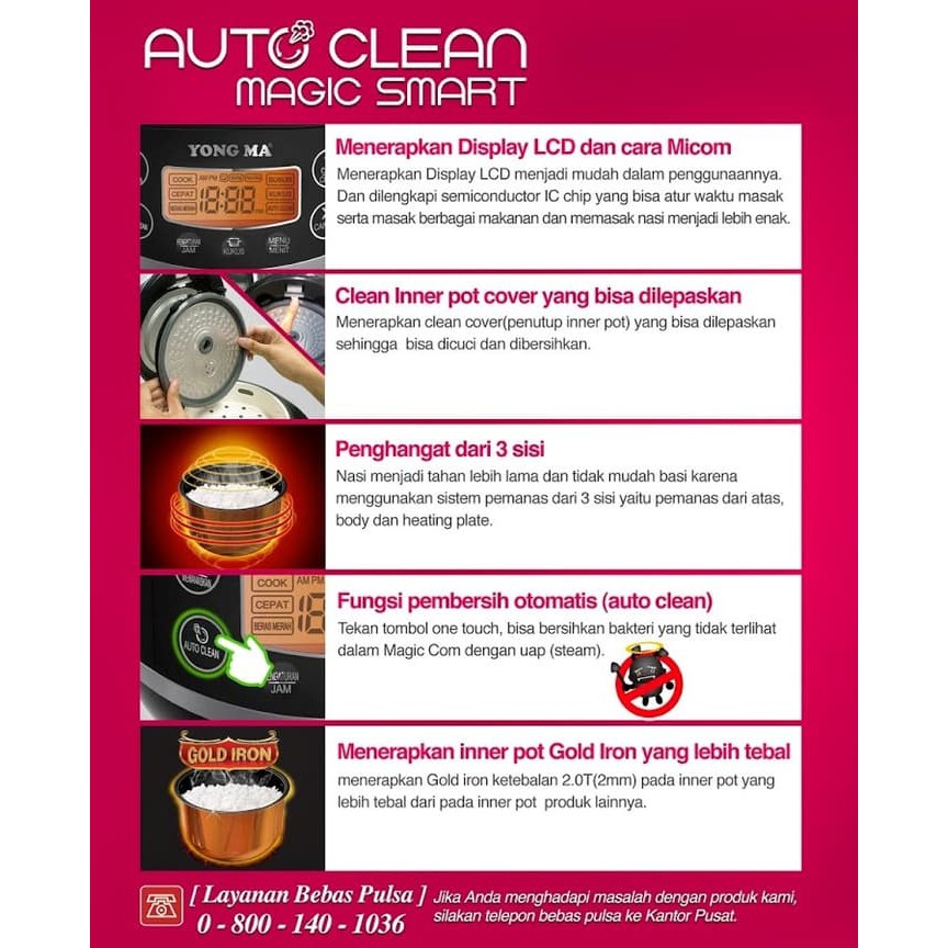 YONG MA - YMC112 - Auto Clean Smart Rice cooker Yongma - 1.3 Liter