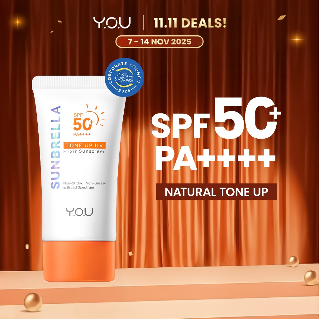 YOU Sunbrella Tone Up UV Elixir Sunscreen SPF50+ PA++++ Tabir Surya Mencerahkan dan Menghidrasi