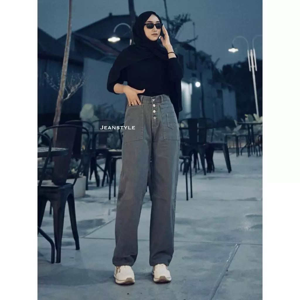 YOYO- New Biru Kekinian Highwaist Kulot Loose Celana Wide Leg Jeans Wanita Korea Style