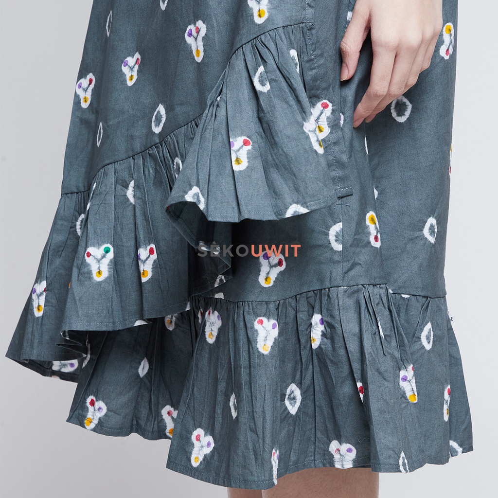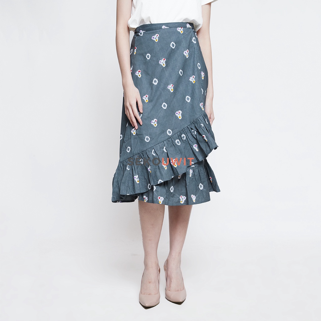 YUCCA Rok Lilit Wrap Skirt Jumputan Grey Sekouwit