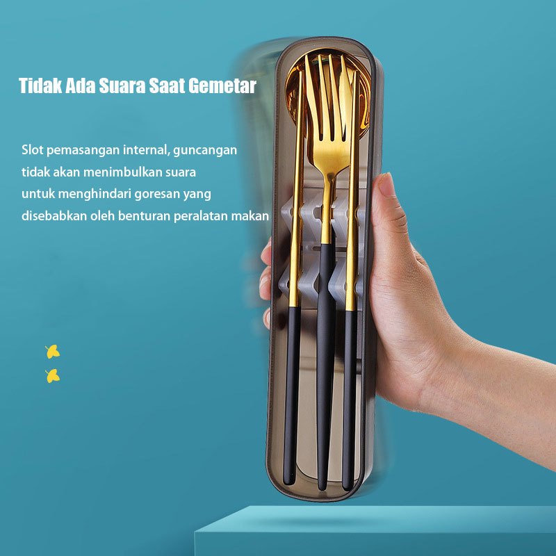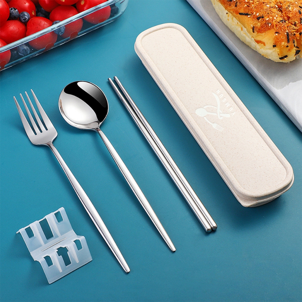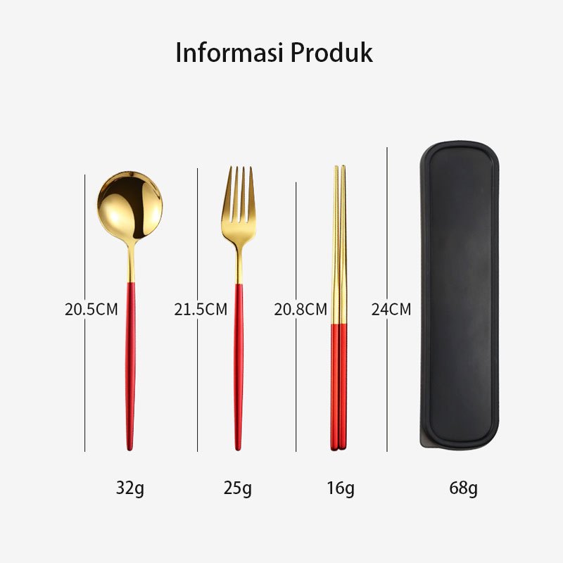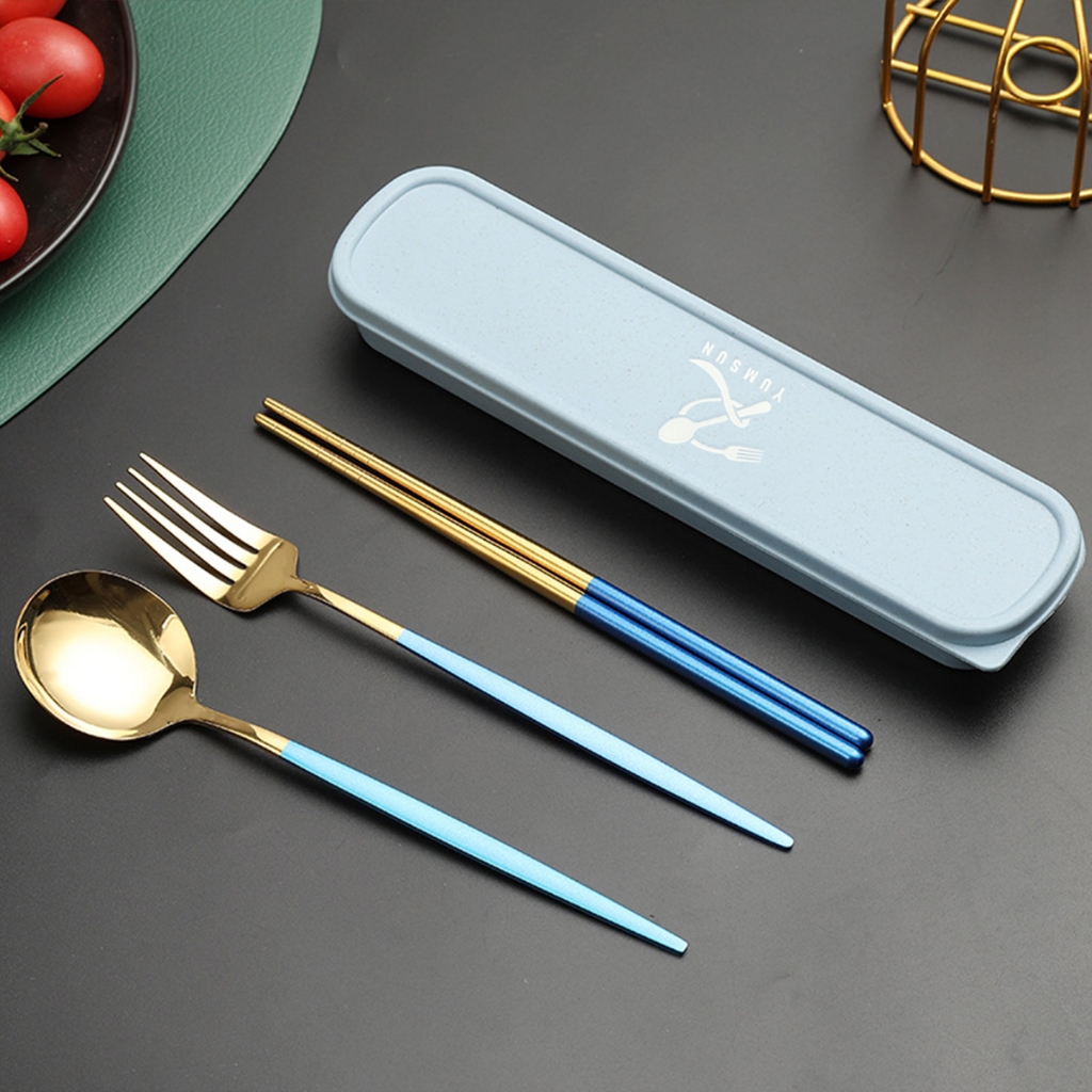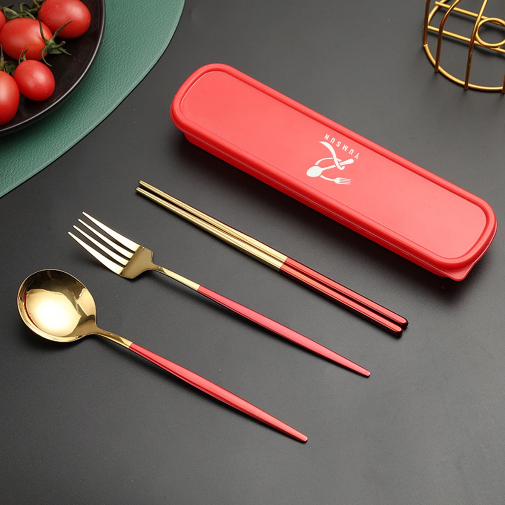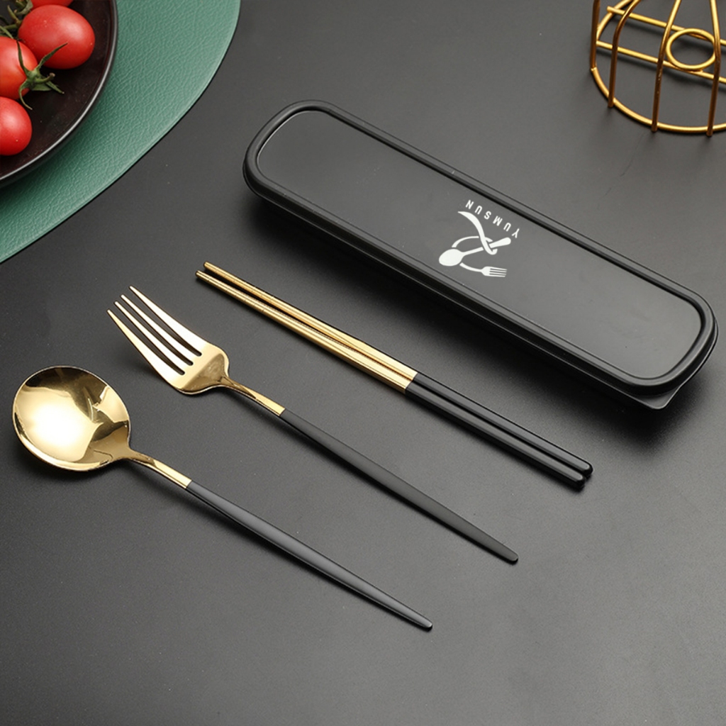 YUMSUN 3 in 1 Sendok Garpu Garpu Sumpit Set Stainless Steel 304 Dengan Casing Tebal Food Grade Dalam Berbagai Warna