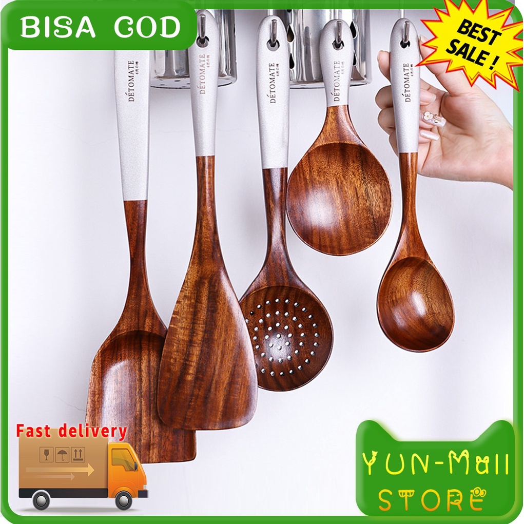 YUN Mall Peralatan Dapur Masak Kayu / Sendok Nasi / Spatula / Sendok Berongga / Sendok Kecil / Sendok Besar / Set Peralatan Dapur Kayu