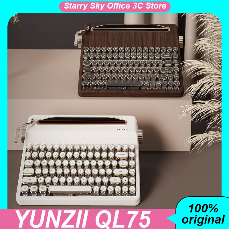 YUNZII QL75 Typewriter Wireless Meanical Keyboard Tri-mode Hot Swap Retro Office Keyboards RGB Windows/Mac/Linux/iOS/Android