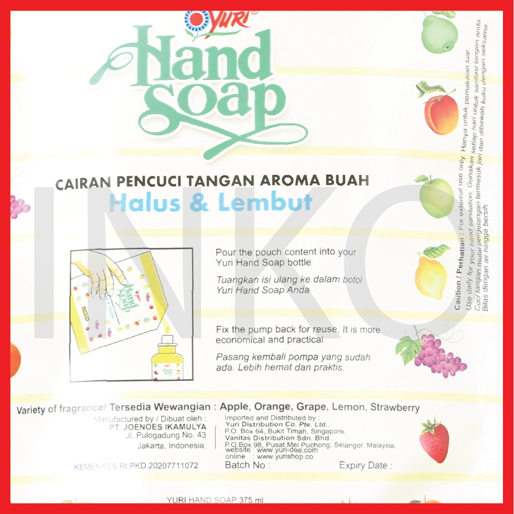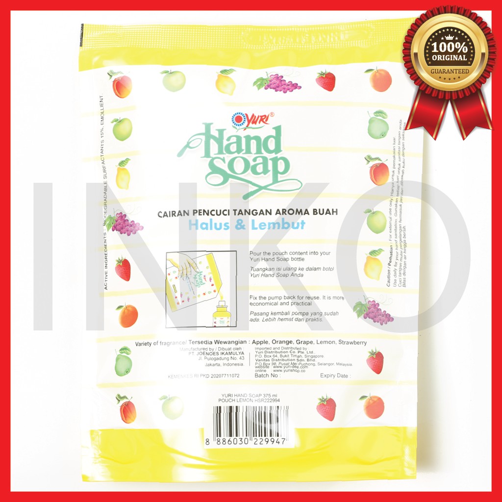 YURI HAND SOAP PENCUCI TANGAN LEMON REFILL POUCH 375ML
