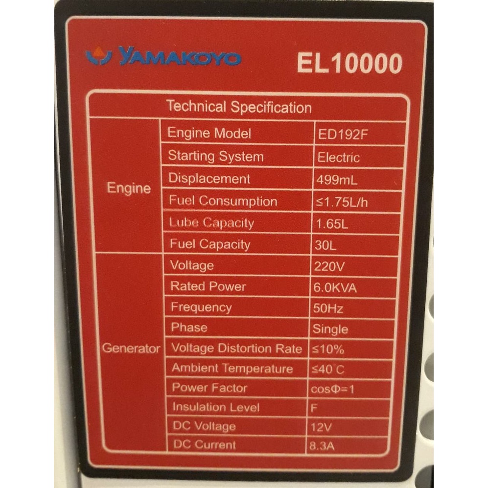 Yamakoyo Silent Diesel Generator type EL 10000 ( Genset 6000Watt )