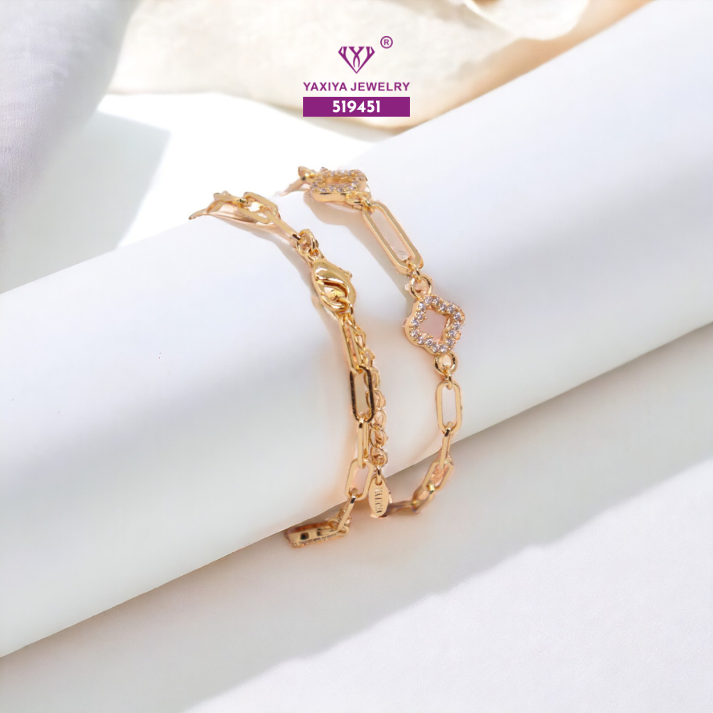 Yaxiya Gelang Rantai Paper Klip Permata Perhiasan Lapis Emas 18K X4-1010