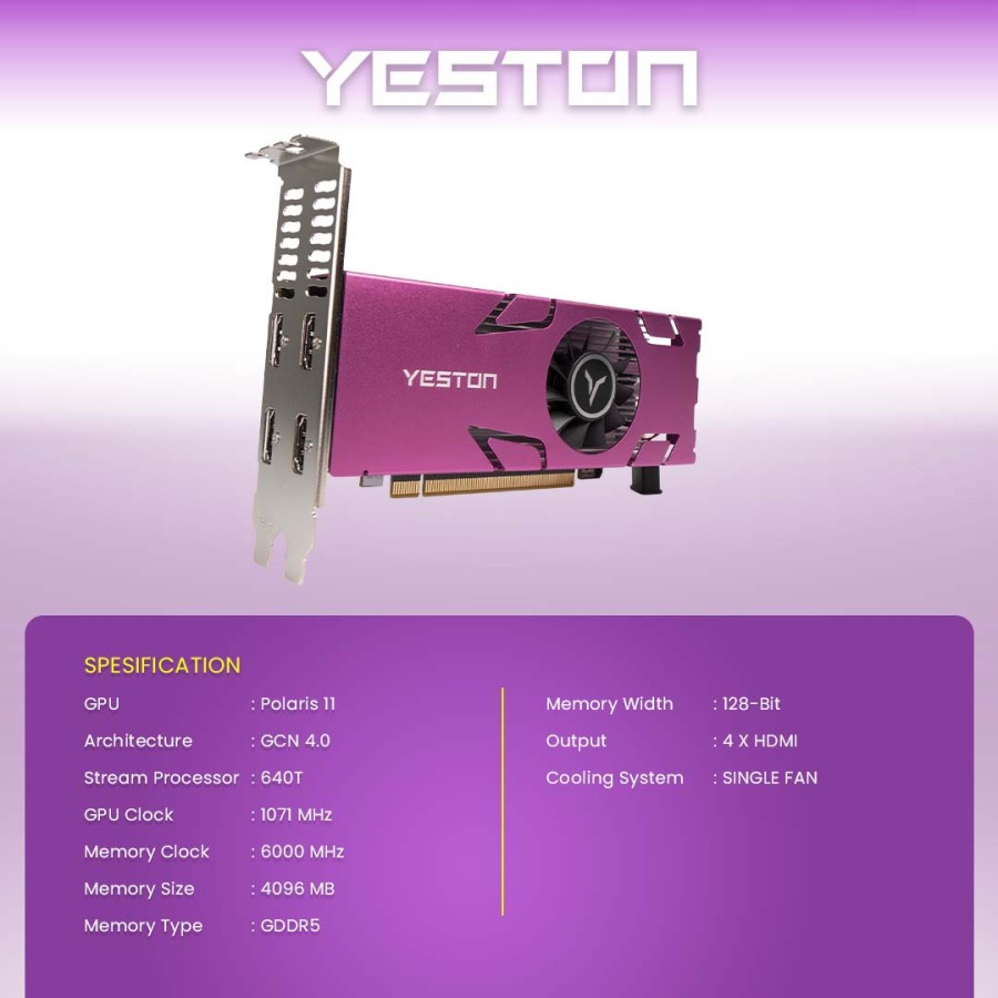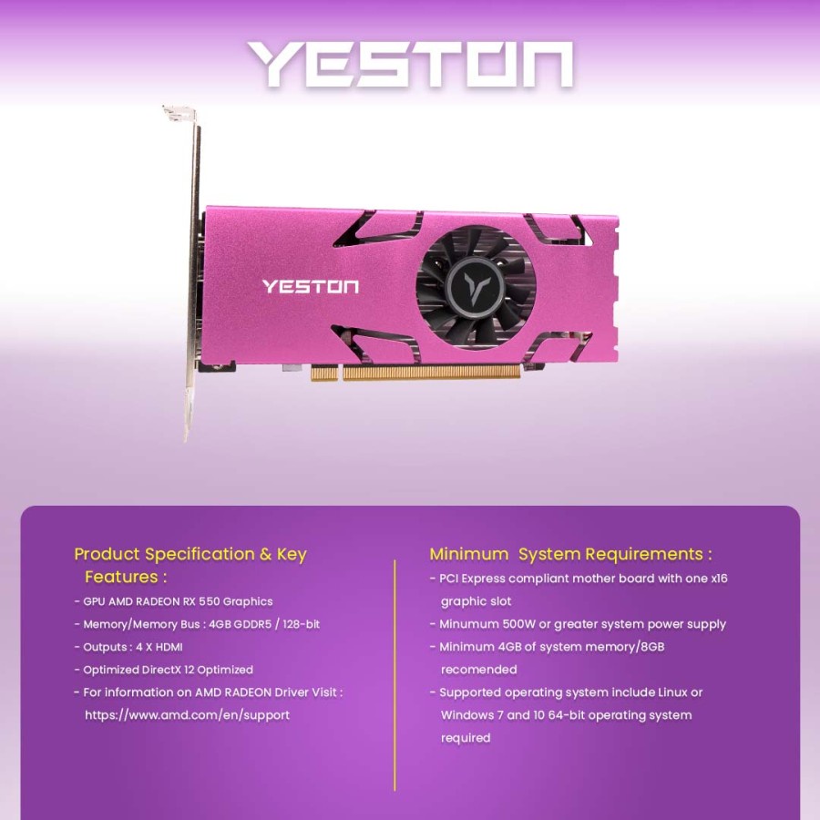 Yeston RX550-4G 4HDMI GA 4GB GDDR5 128Bit 1071MHz 6000MHz Graphics Card for Video Multi-Screen Series