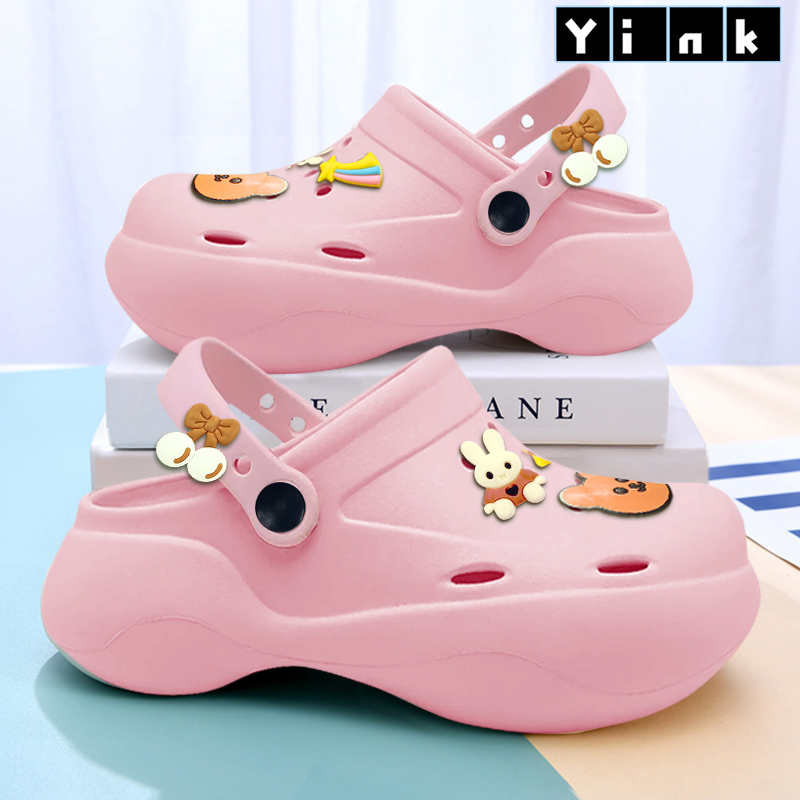 Yink Sendal Wanita Kekinian Import Terbaru Sendal Wedges Sandal Kodok Sendal Crocs Slip On Jibbitz Fuji Baim Viral Sandal Selop Empuk Eva Platform Stiker 3D Sol Tebal