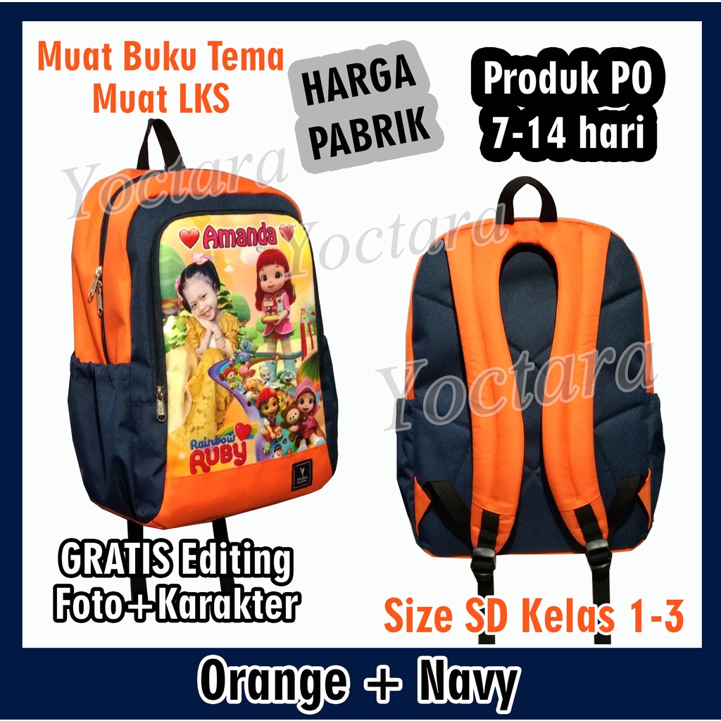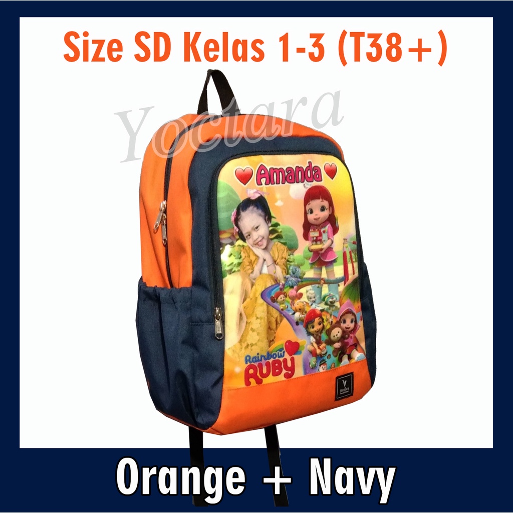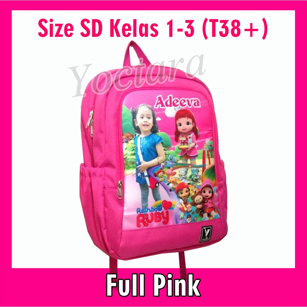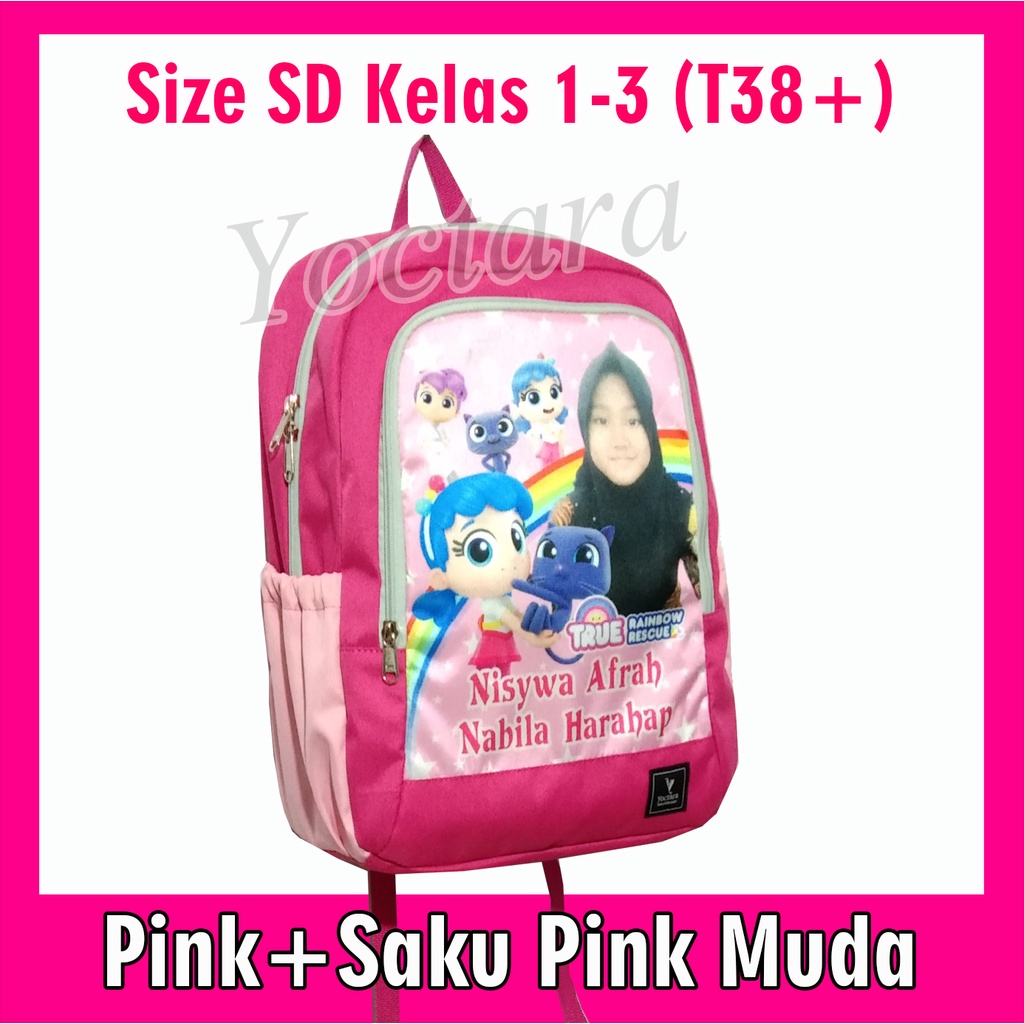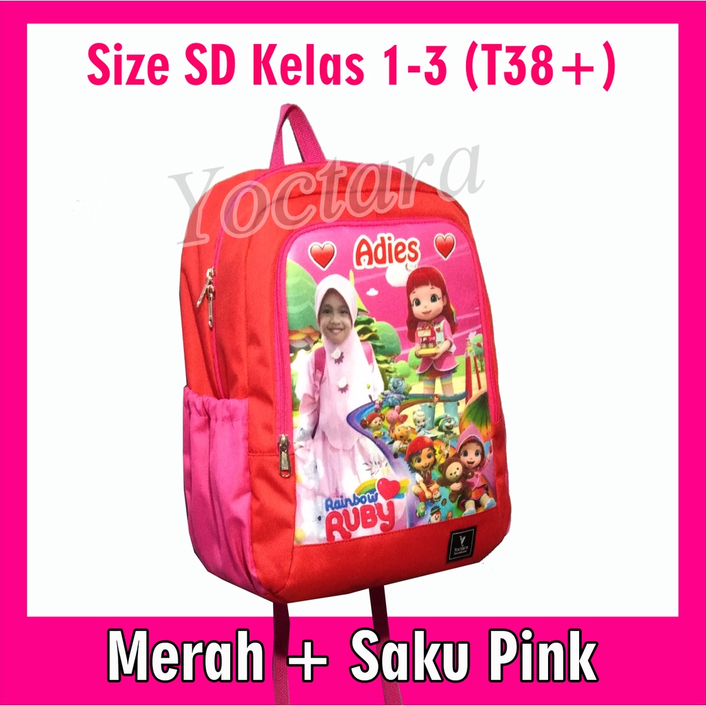 Yoctara T38+ | Tas Anak Pakai Foto Nama Karakter Rainbow Ruby Rainbow Rescue Untuk SD Kelas 1-3 Tas Sekolah Tas Ransel Tas Anak Pakai Foto Nama Karakter Tas Custom