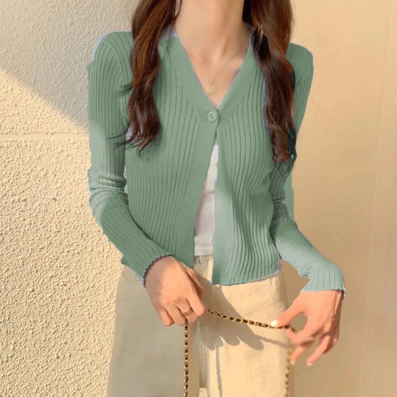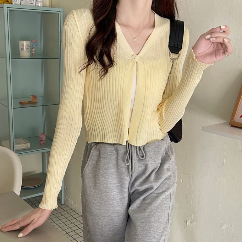Yolla knitted kancing Cardigan korean style Sweater rajut wanita Baju lengan panjang Maja crop top