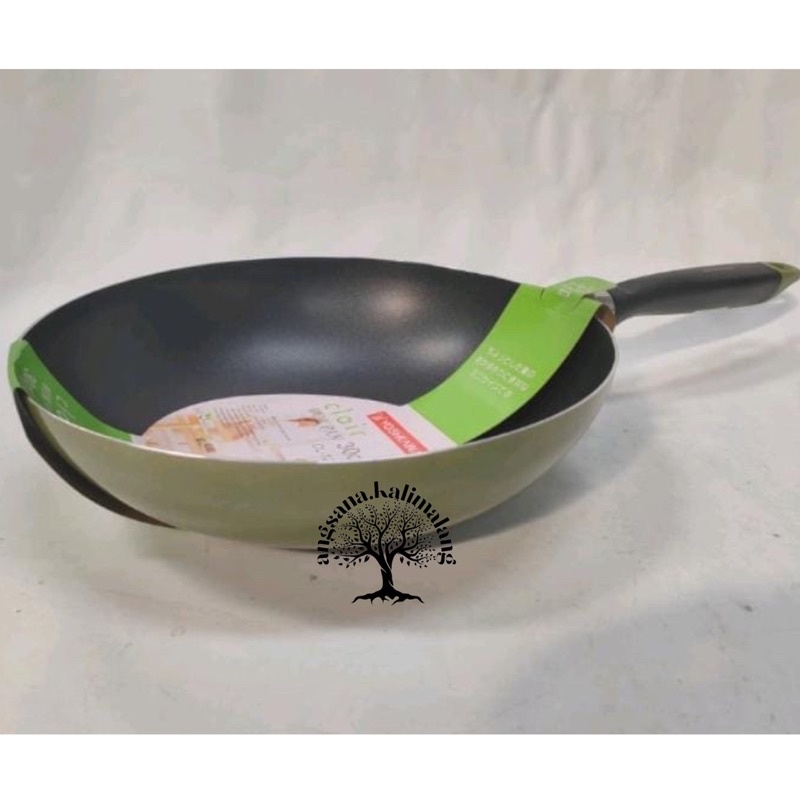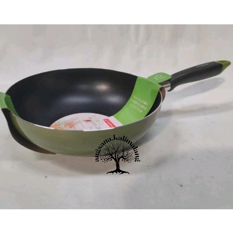 Yoshikawa Wok Pan Teflon Seri CL Hijau Dalam / Tidak Cetek 24 26 28 30 cm
