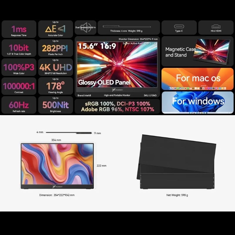 Yourday Magniv 4K OLED 15.6 Inch Portable Monitor USB Type C HDMI Super Premium U15NO