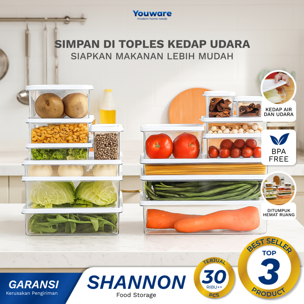 Youware - Shannon (Harga Satuan) Food Preparation / Kotak Penyimpanan Makanan Kulkas PP Food Storage Fridge Organizer Wadah sayur buah Kontainer kulkas Food Grade BPA Free