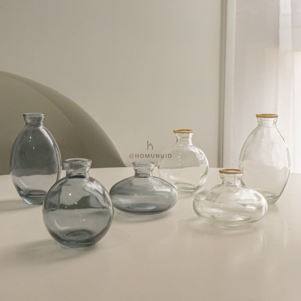 Yuki Vas Bunga Kaca Estetik/Japanese Glass Bottle Vase/Vas Kaca Bening Hiasan Rumah/Vas Minimalis Dekorasi Property Foto