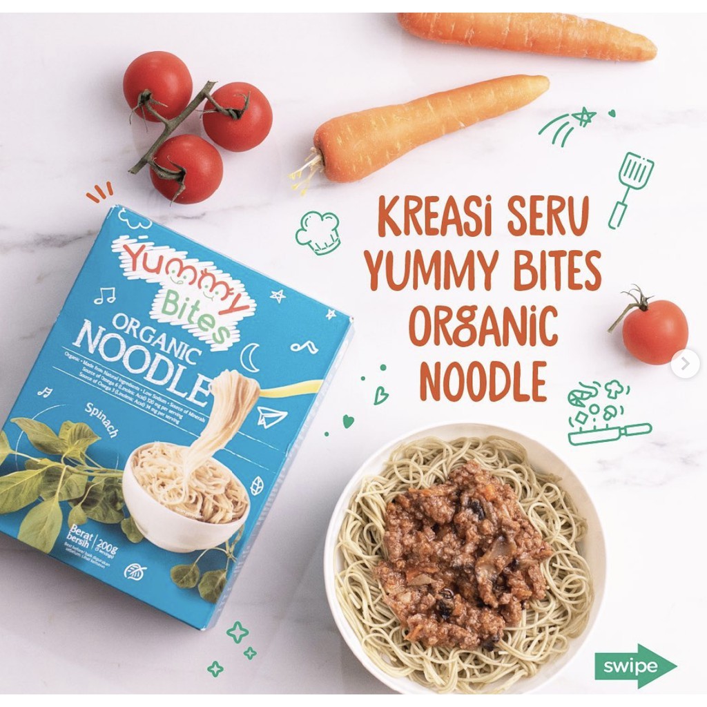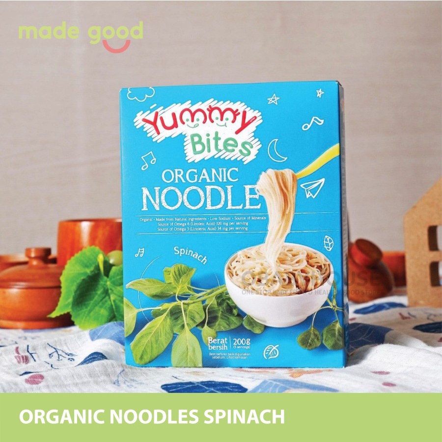 Yummy Bites Organic Noodles - Mie Organik 200 gr untuk Bayi Sehat 8+ b Spinach