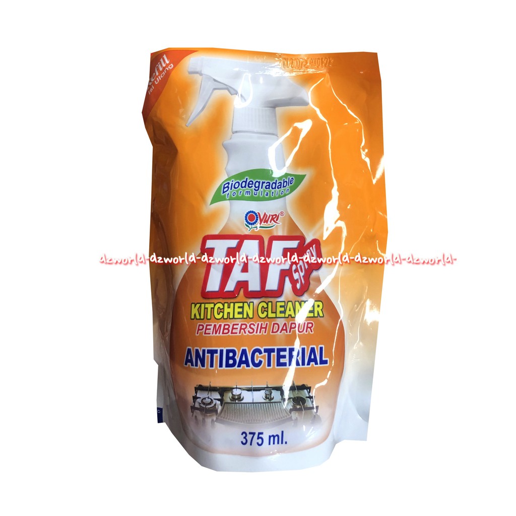 Yuri Taf Spray 375ml Kitchen Cleaner Pembersih Dapur Antibacterial Refill Kemasan Pouch Yurri Taff Anti Bacterial