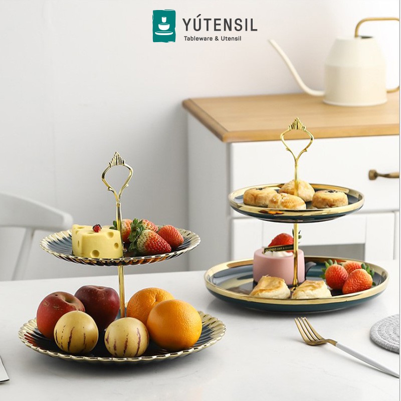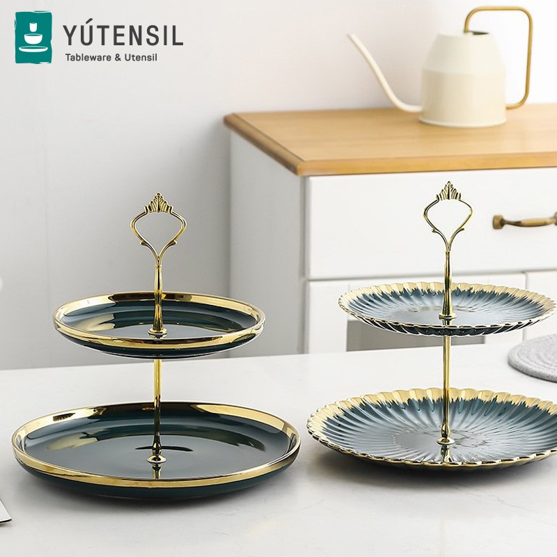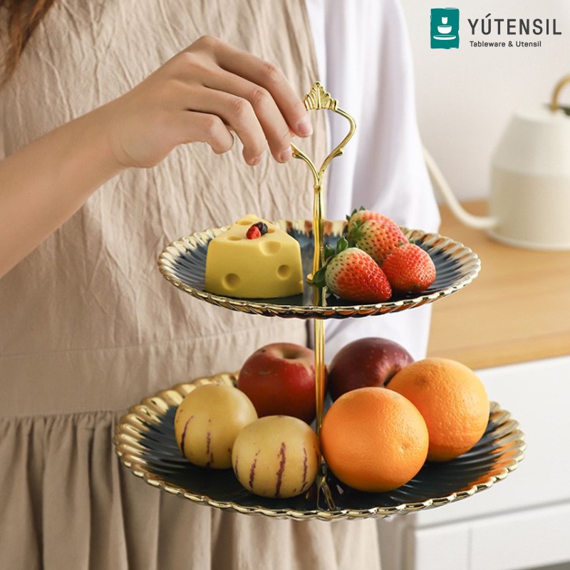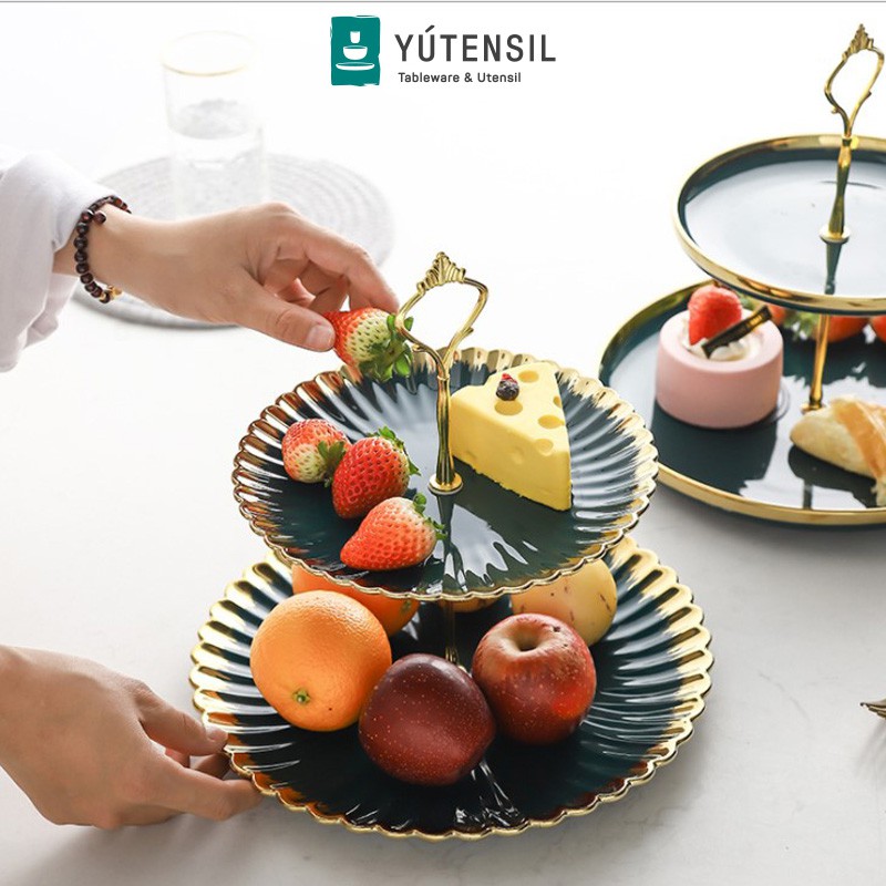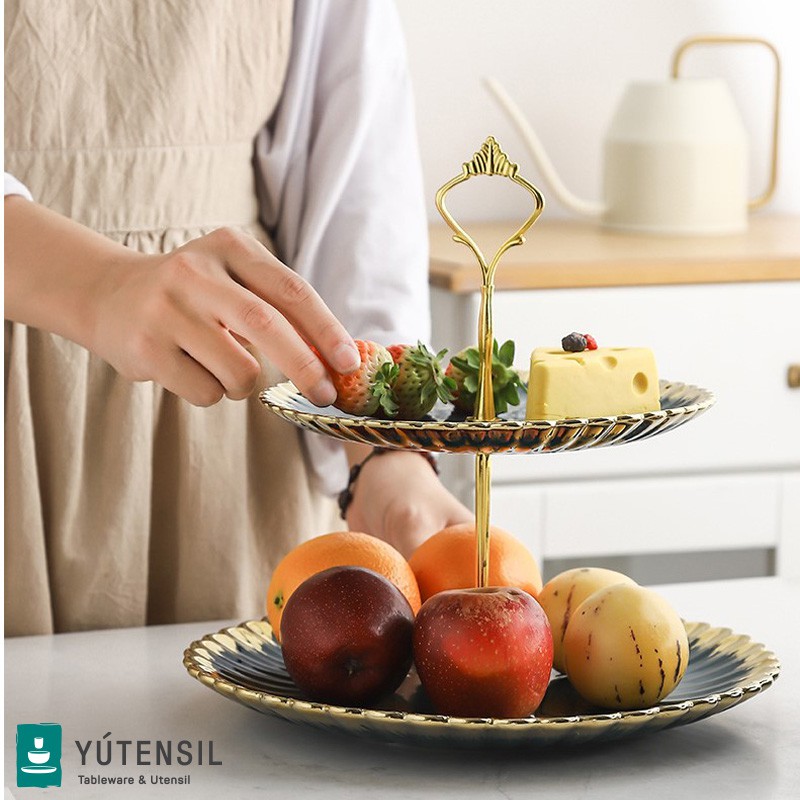 Yutensil Cake tier / Piring Kue Dua Tingkat/ Cake Stand / Tatakan Rak Kue Susun / Piring Tingkat
