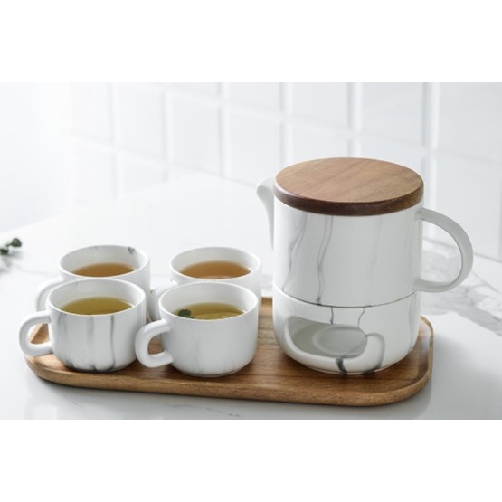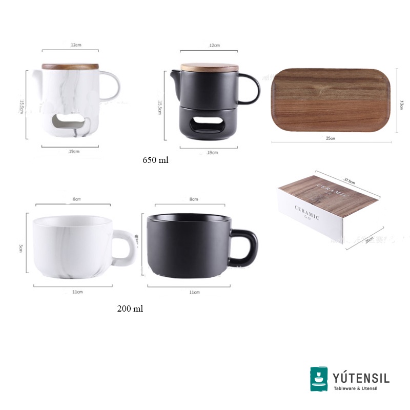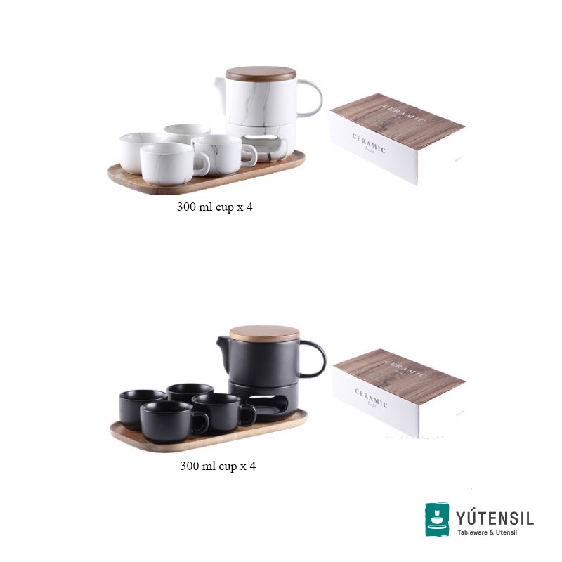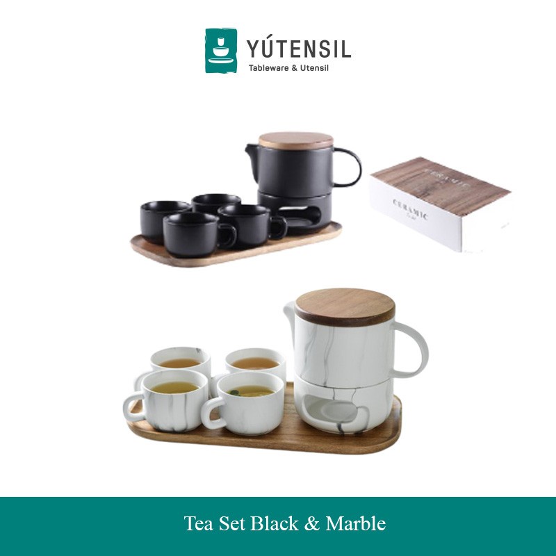 Yutensil Cangkir Teko Set Keramik Marble / Tea Pot Set Gitbox