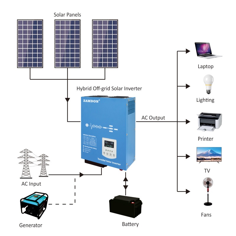 ZAMDON Frekuensi Rendah 3.2KW/4KVA 24V Off grid Inverter Surya Hybrid built-in 60A MPPT Garansi Dua Tahun Built-in trafo toroidal