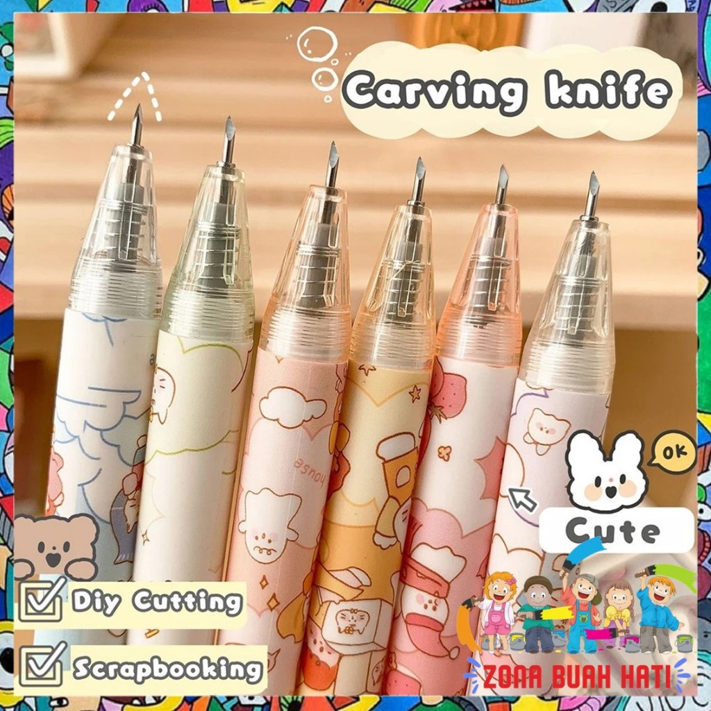 ZBH Pemotong Kertas Bentuk Pena Karakter Kartun Bear Strawberry Lucu Cutter Pen Knife Cut Stickers Scrapbooking Alat Pemotong Stiker Bentuk Pena Cutting Tools Portable Knife Carving DIY