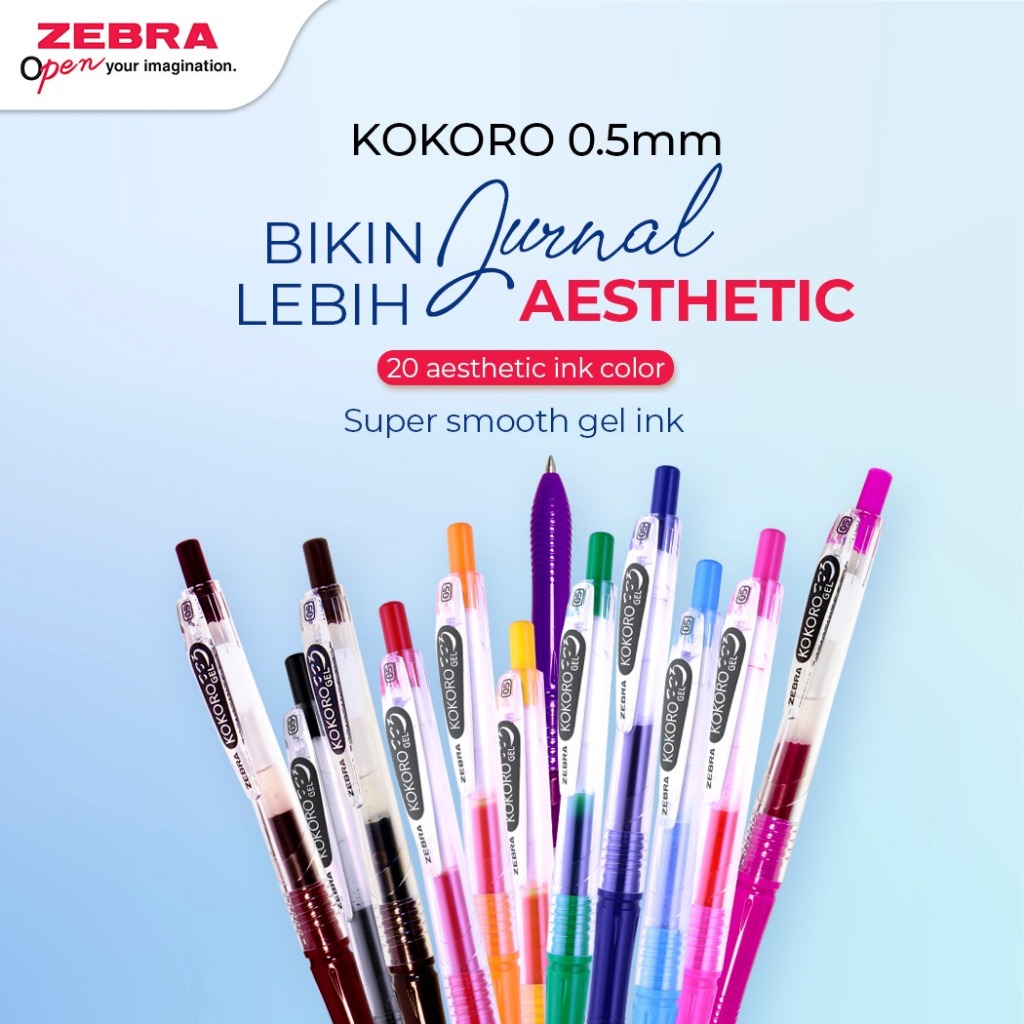 ZEBRA Kokoro Pulpen Gel 12 Warna Colorful 0.5mm Retractable Gel Pen Pigment Gel Ink
