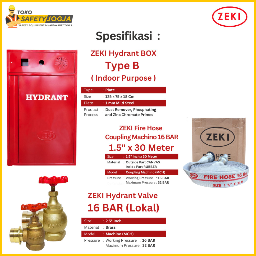 ZEKI FULLSET Fire Hydrant Box Indoor TYPE B 75x125x18cm Tekanan 16BAR Boks Penyimpatan Alat Pemadam Kebakaraan Hydrant Box Type B LENGKAP 1 SET