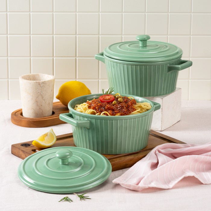 ZEN Casserole Keramik Mangkok Saji dengan Tutup Milky Green