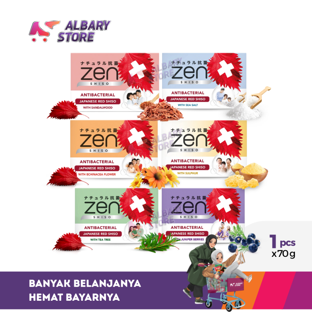 ZEN Antibacterial Body Bar Soap Japanese Red Chiso 70g | Sabun Mandi | Sabun Batang | Sandalwood | Sea Salt | Tea Tree | Sulphur | Echinacea Flower | Juniper Berris
