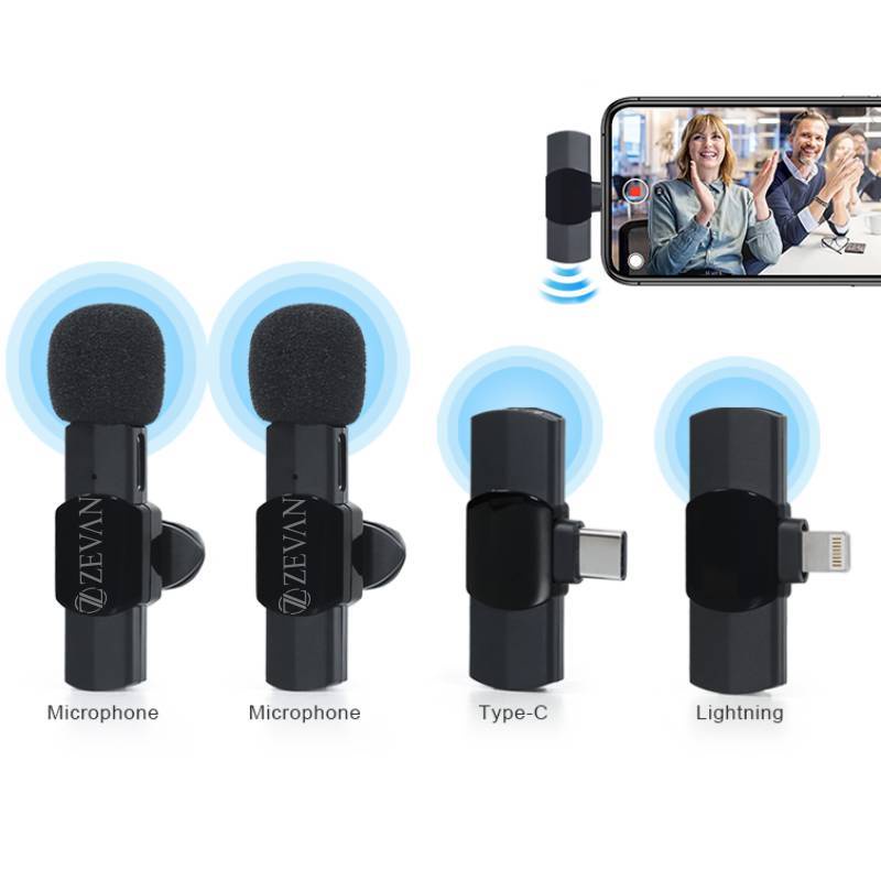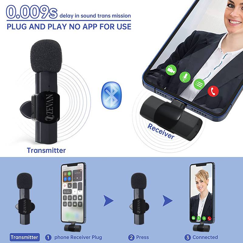 ZEVAN Microphone Wireless Portable Mini Clip On Mic Laptop Zoom Webinar Podcast Meeting Live Stream