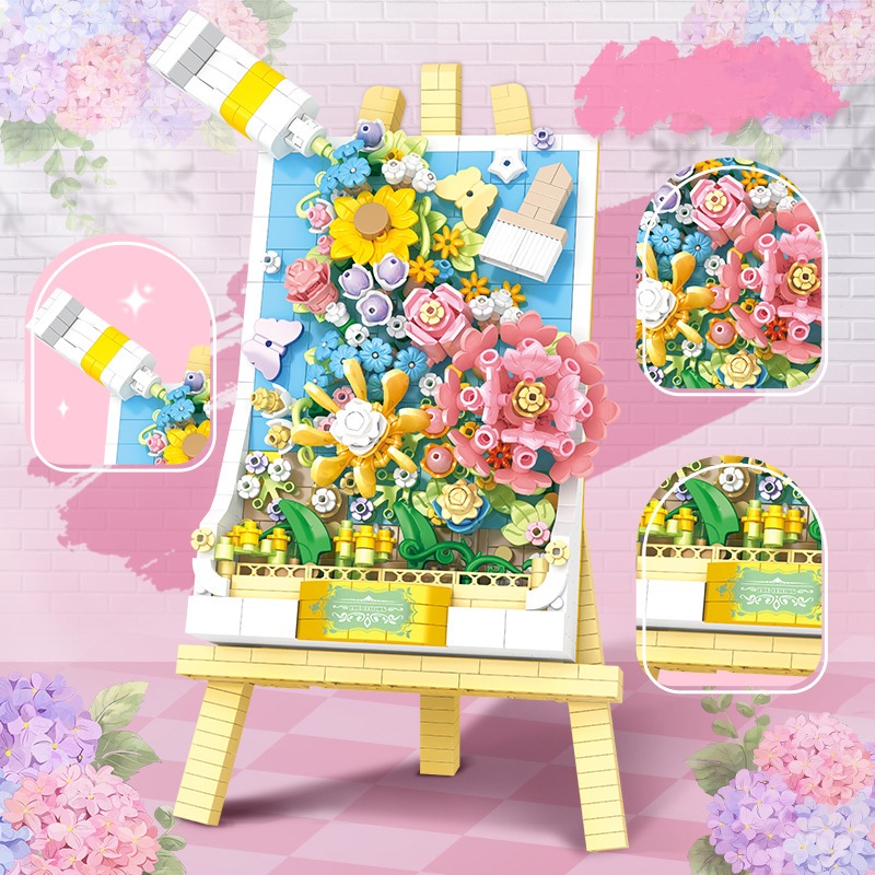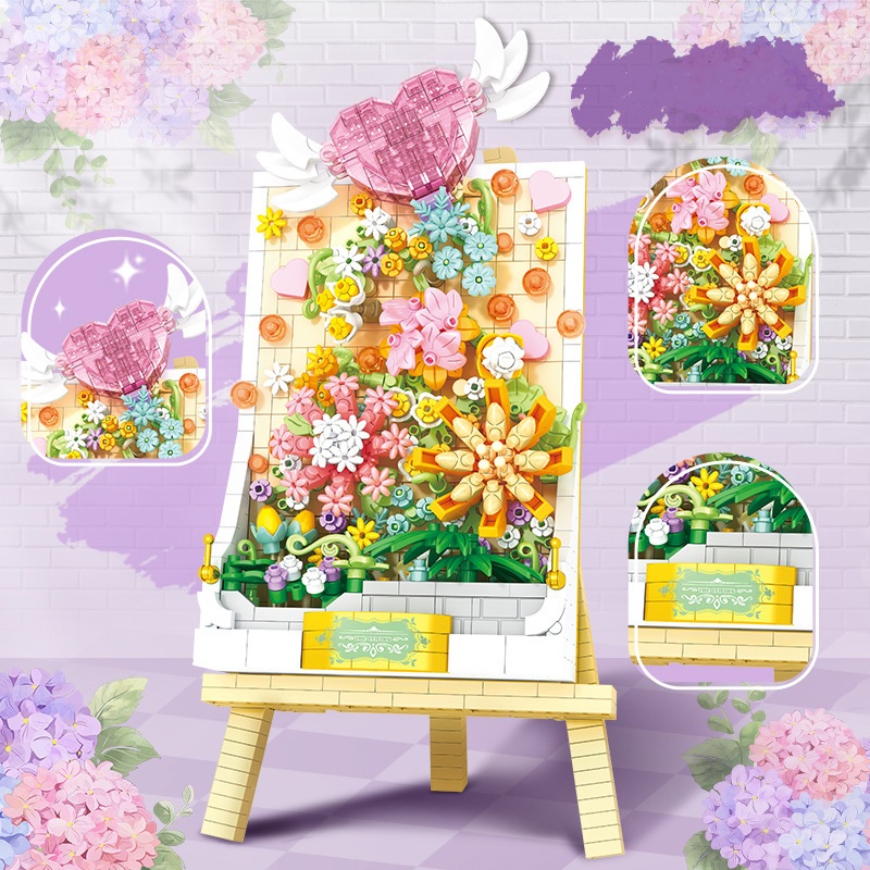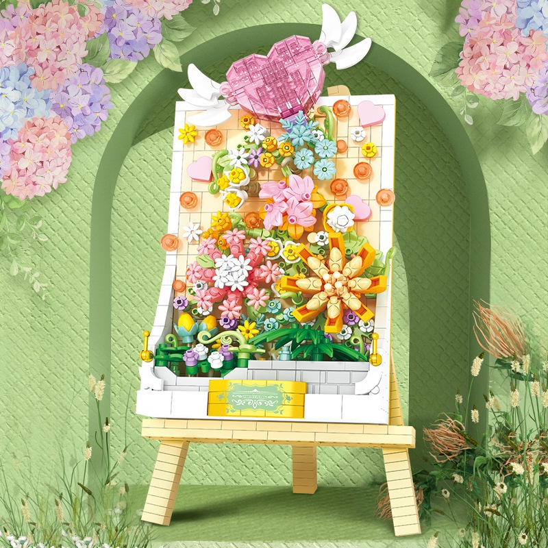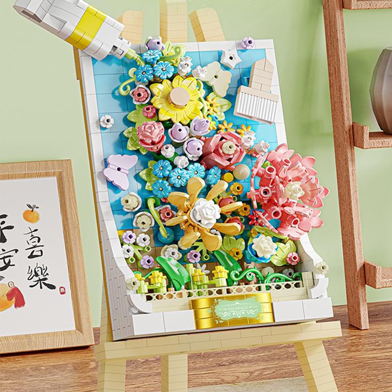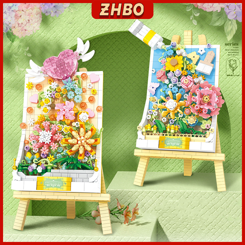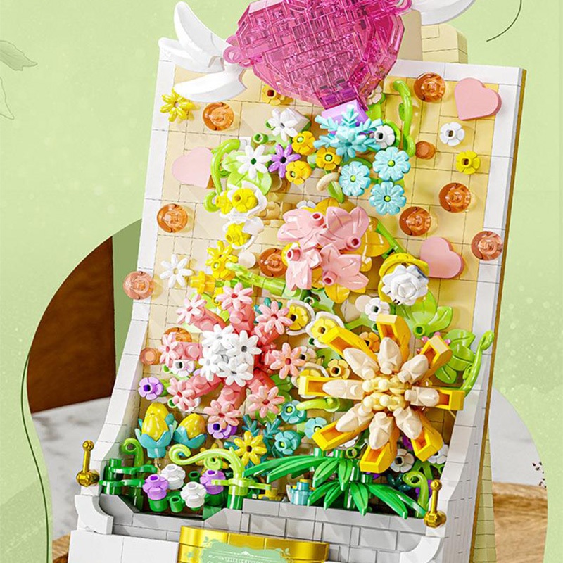 ZHBO Mainan Bunga Bricks Blok Bunga Buket (LED) 1000Pcs teralis Mainan Balok DIY Flower Hadiah untuk Susun Mainan Anak Perempuan