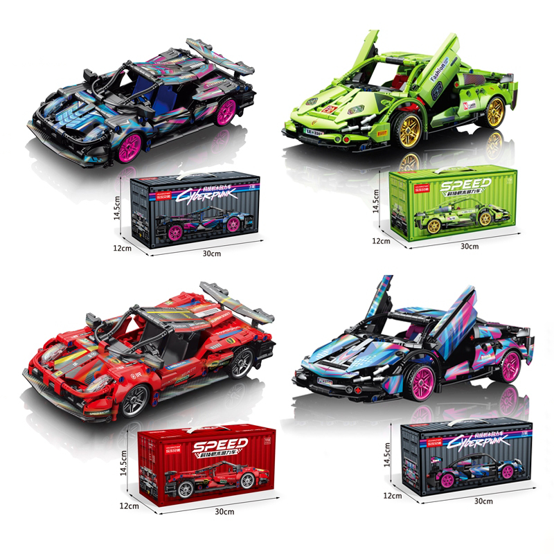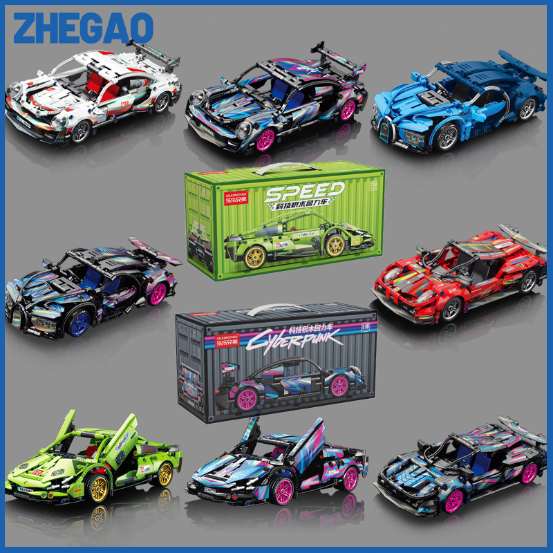 ZHEGAO Mainan Blok Edukasi Mobil pullback Cyberpunk Susun Blok Bangunan Mainan Anak Laki-laki