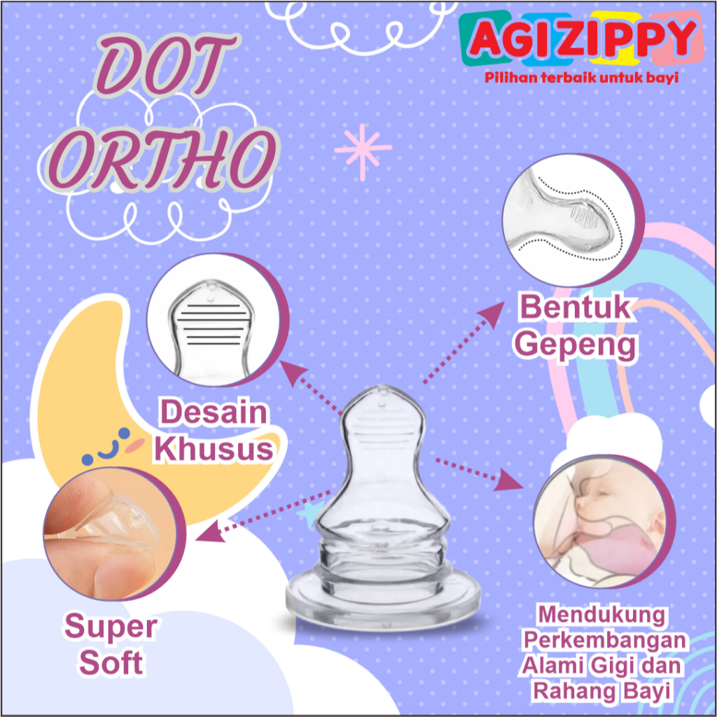 AGI ZIPPY Dot Bayi Silikon Ortho Bentuk Gepeng Ukuran S / M / L BPA Free