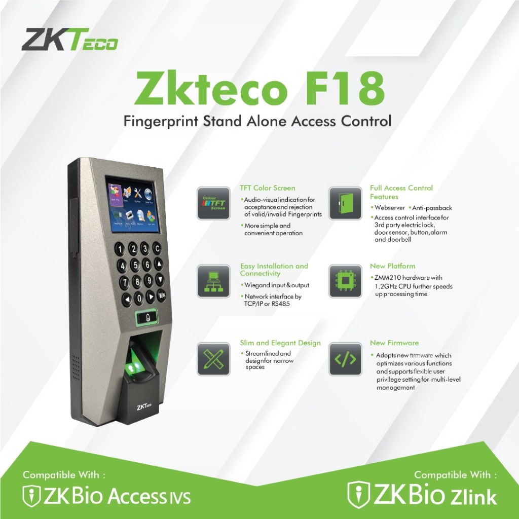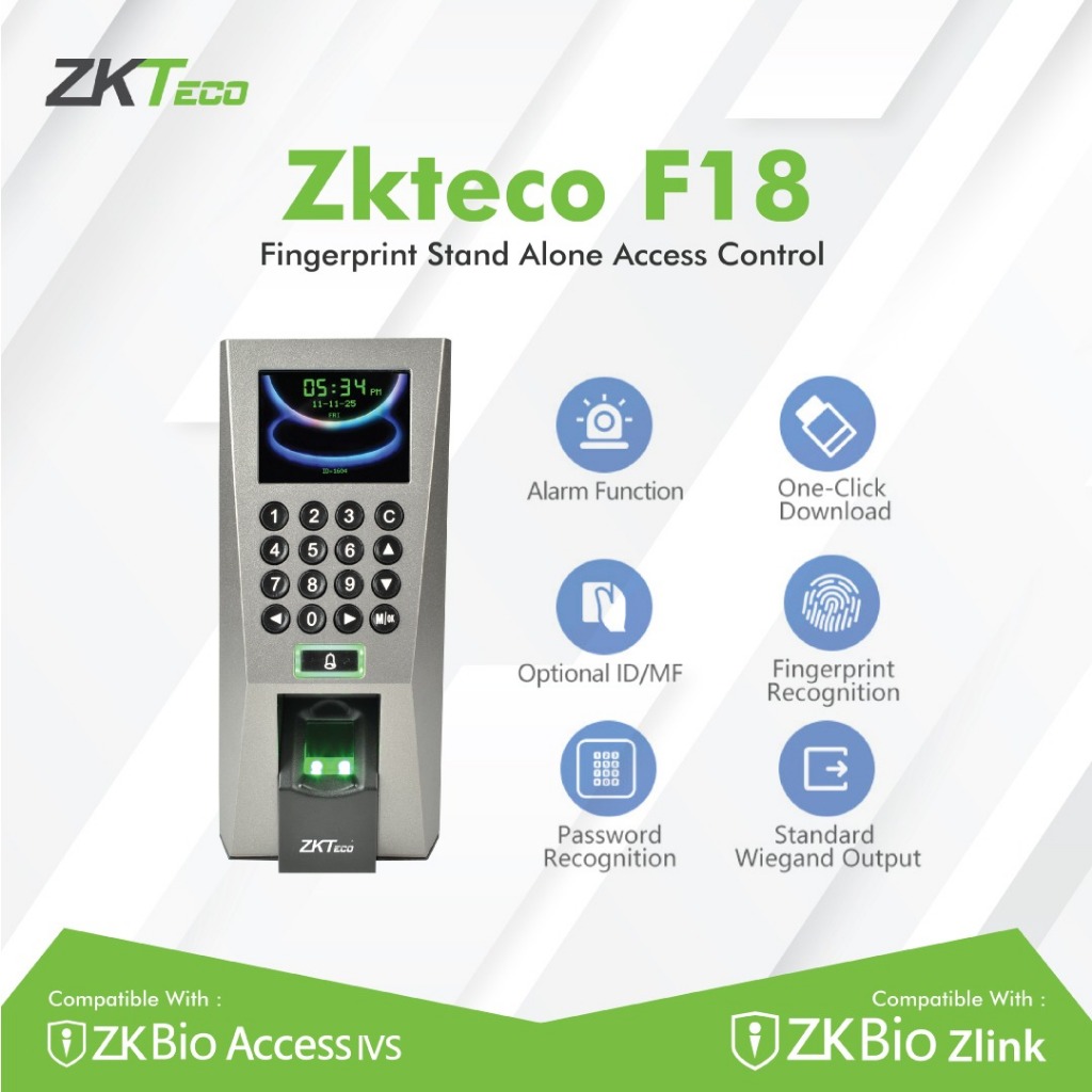 ZKTeco F18-ID – Mesin Absensi & Akses Kontrol Sidik Jari + Kartu ID