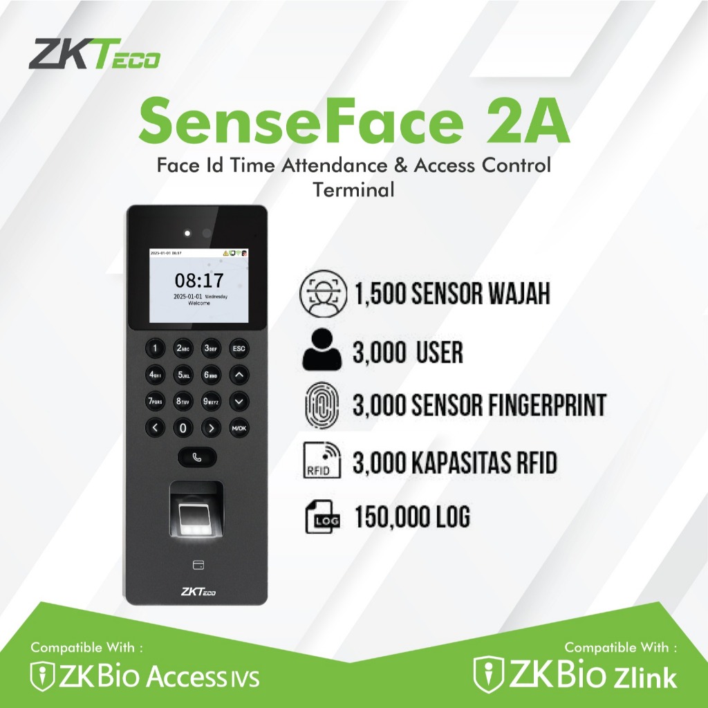 ZKTeco SenseFace 2A - MF | Mesin Absensi & Akses Kontrol Wajah + Kartu Mifare | Dual Camera IR & RGB | Layar Sentuh 5 Inch | Akurasi Tinggi