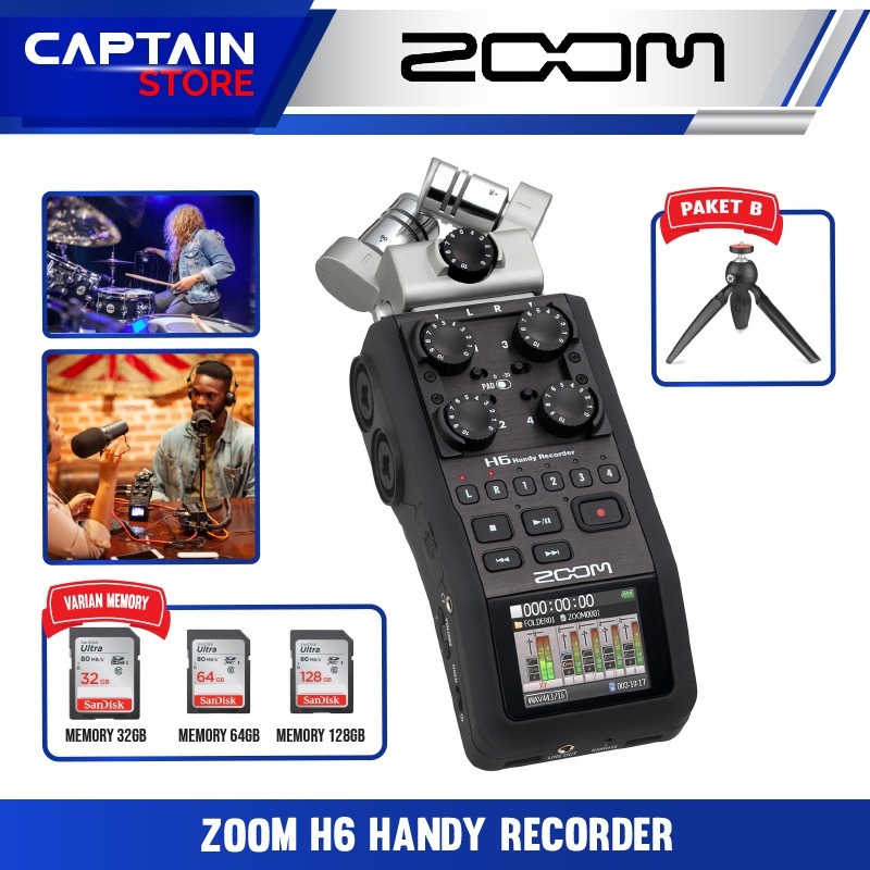 Zoom H6 / H6E Essential with APH-6e Handy Recorder All Black 6-Input 6-Track Portable Handy Recorder