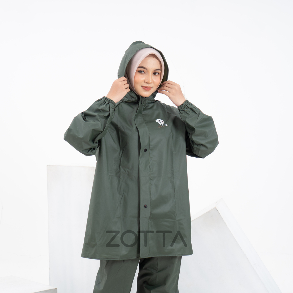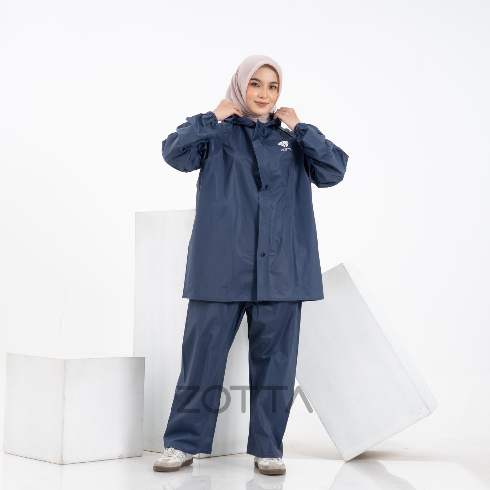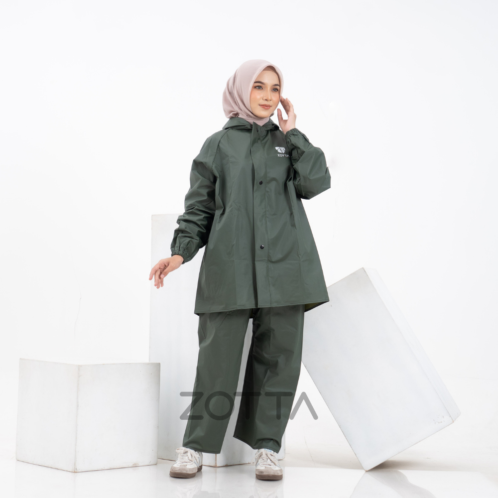 ZOTTA Jas Hujan Wanita Dewasa Stelan Atasan Celana Raincoat Bahan PVC