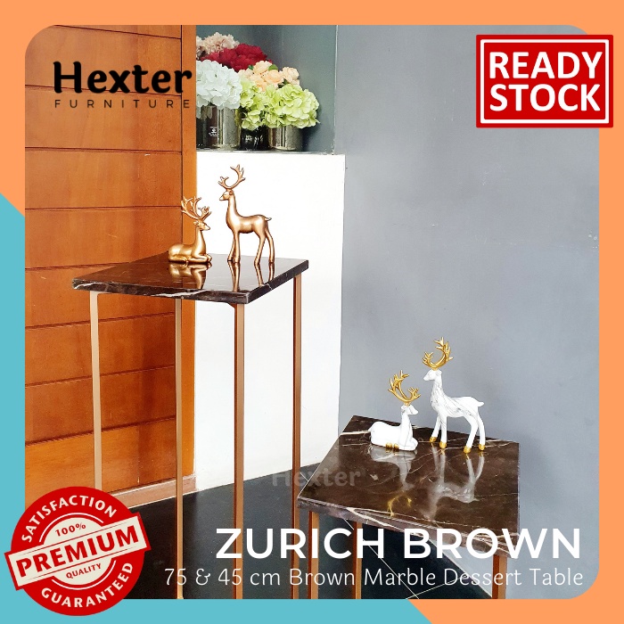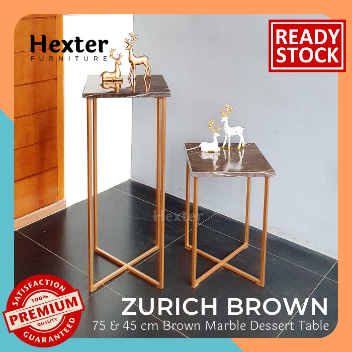 ZURICH - Meja Bar Tinggi Hias Sudut Meja Dessert Table Brown Marble