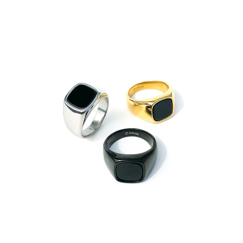Zafa Cincin Titanium Pria Batu Onyx Anti Karat - Daro