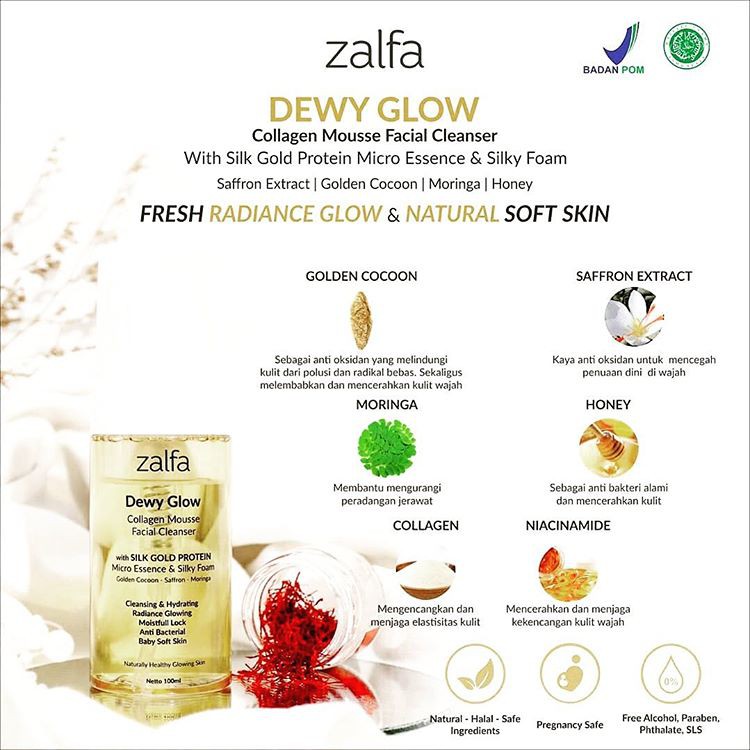 Zalfa Natural Skincare Dewy Glow Collagen Mousse Facial Cleanser
