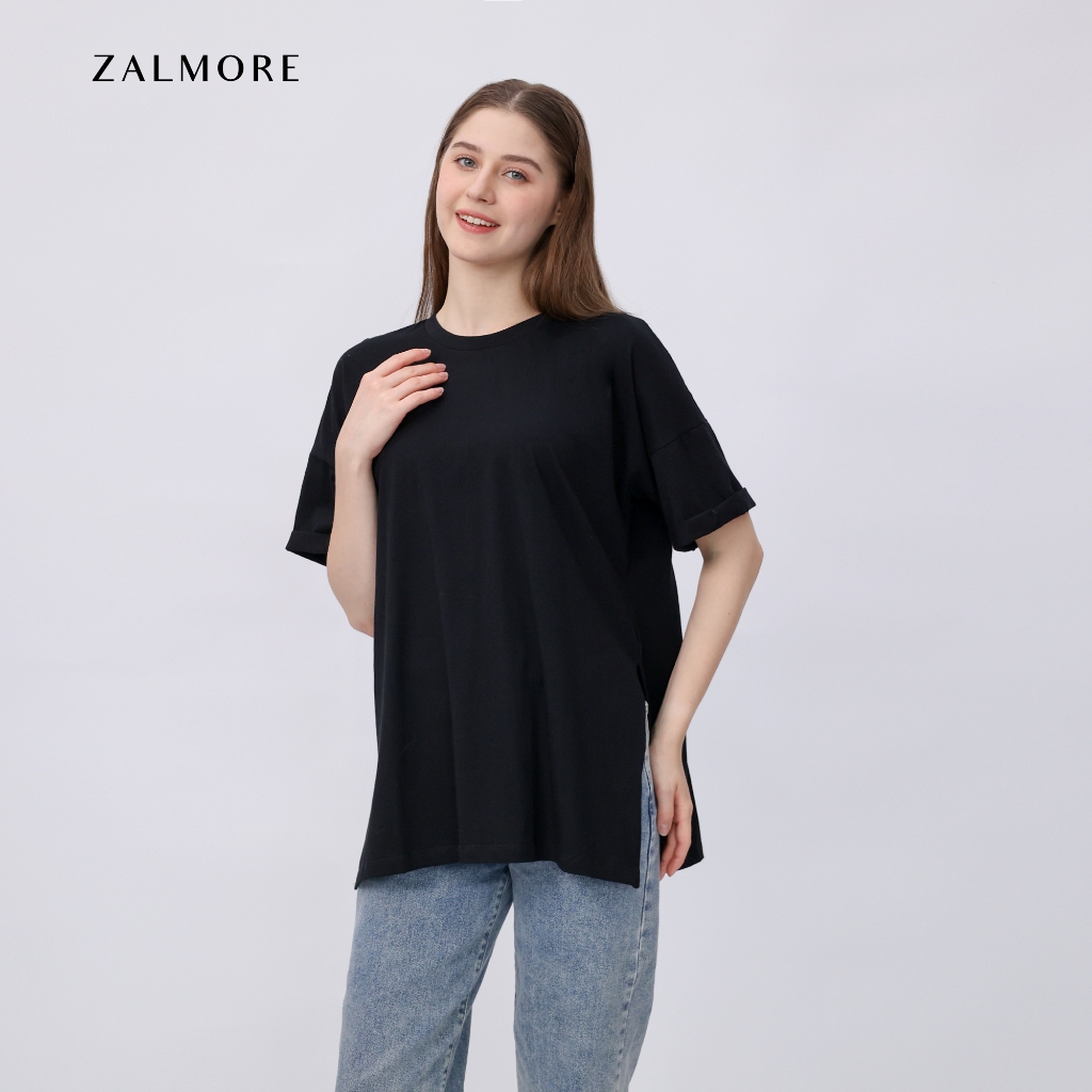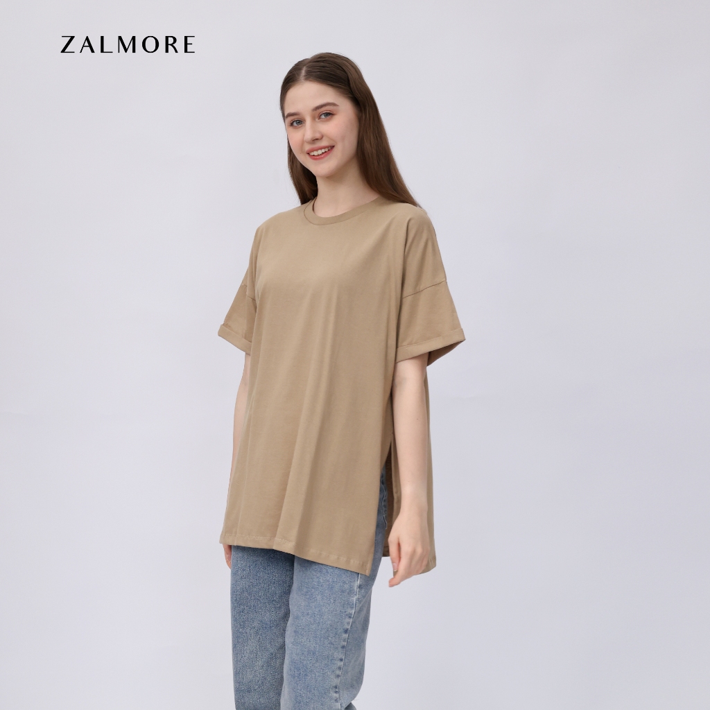 Zalmore Oversize T-Shirt with Slit | LUMA Cotton™ Premium - Kaos Oversize Wanita Lembut Ringan Sejuk Anti Nerawang