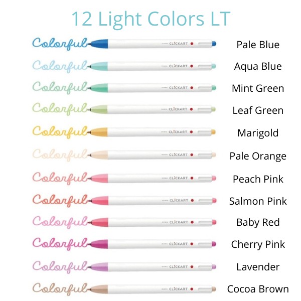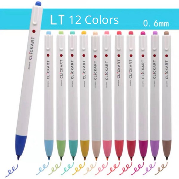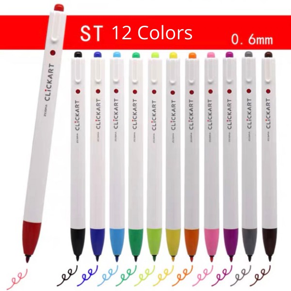 Zebra ClickArt Click Art 0.6mm Marker Fine Liner 1 Set 12 Colors Standard Dark Light Pastel Set